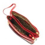 Vaticana è una borsa a tracolla in pelle scamosciata, con tracolla in pelle removibile e regolabile.